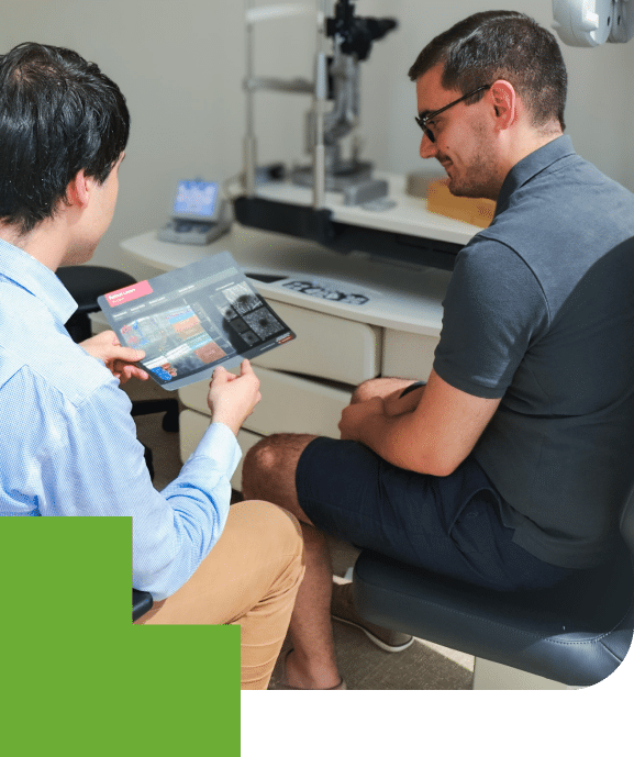 pour compléter l’analyse votre rétine et du nerf optique notamment chez les patients souffrant de diabète, trombose et DMLA humide